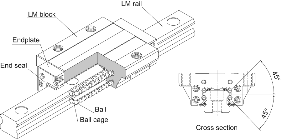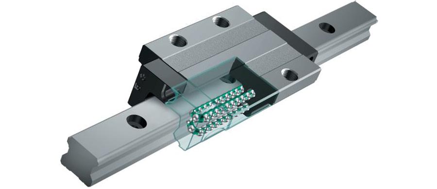 The standard LM Guides consists of four rows of balls that recirculate within the LM block onto the LM rail with ball-to-ball contact whilst running on the raceways of a particular LM Rail. This results in a shortage of grease life, therefore, shortening the service life.